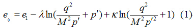 在正常固结的情况下,MCC模型中的土体孔隙比与应力状态之间的关系由下式确定