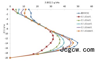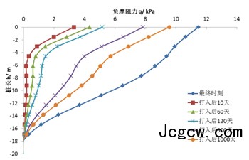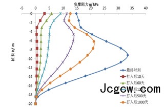(b)桩身负摩阻力曲线