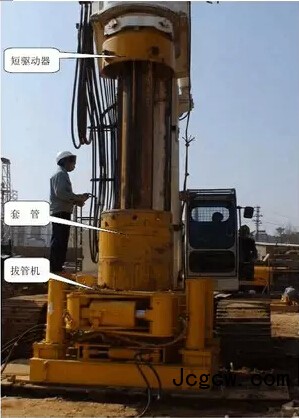 采用旋挖钻机全套管钻进施工工艺,是利用旋挖钻机的动力系统驱动套管,利用旋挖机垂直度显示功能来控制桩垂直度,。此工艺优点为: