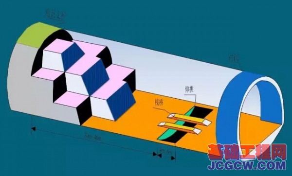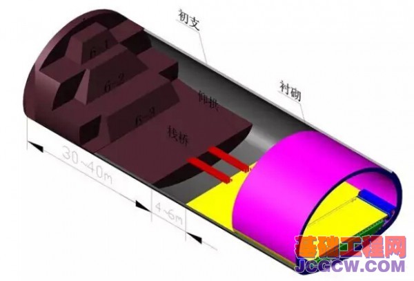三台阶七步开挖法施工立体效果图