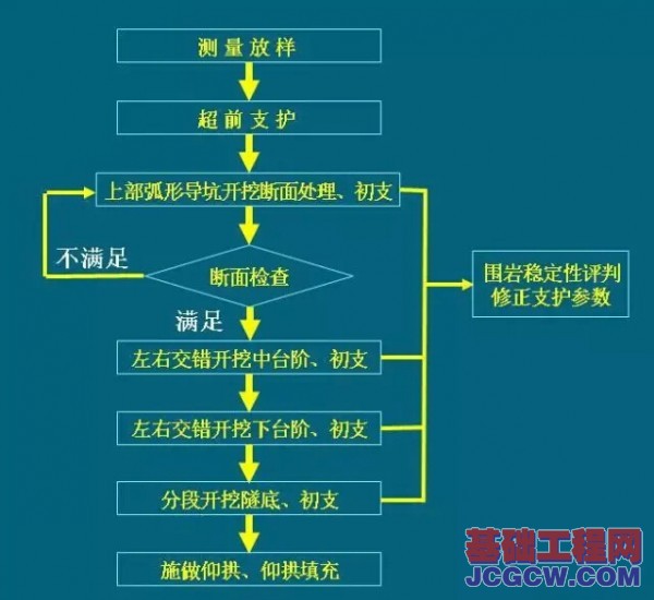 每部开挖后均应及时支护,隧底初期支护后应及时施做仰拱,尽早封闭成环。