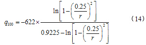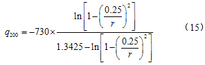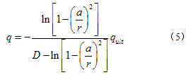 为了研究桩基础的扩孔效应对黄土的结构性弱化产生的影响,本研究将从零半径开始单桩扩孔的问题中广义剪应变表示式(公式(4))代入公式(10)中,同时将公式(9)亦代入公式(10)中,可以得到单桩扩孔后桩周黄土的结构性参数的计算公式为:
