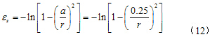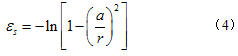 基于以上条件和假设,Collions and Yu[7]推导了从零半径开始单桩扩孔的问题中,认为广义剪应力和广义剪应变都为a/r的函数,得到了广义剪应变可以表示为:
