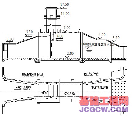 该水闸位于佛山市顺德区,是Ⅳ等小(1)型工程,主要建筑物为4级,于2002年开始兴建。水闸为整体式刚架结构,单孔,净宽4米,闸室总宽度5.6米,带胸墙,如图1所示。