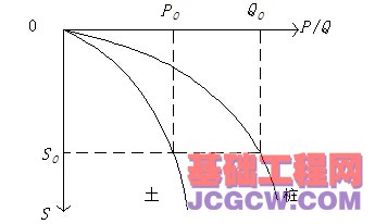 假定已经在现场做了地基土和单桩的载荷试验。根据宰金珉等人的研究,复合桩基中的基桩受力与普通单桩的受力比较接近,且实际受力过程中基桩的承载力发挥接近极限荷载,故可以直接采用现场的单桩的载荷试验曲线来分析。在水闸的复合桩基中桩与桩间土可以看成是相对独立的体系,在桩和土的位移相等的条件下,根据桩和土的荷载~沉降曲线确定桩和土分担的荷载。