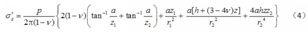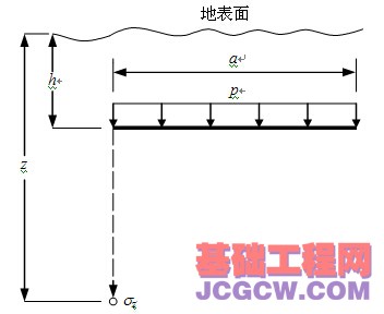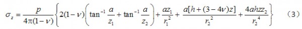 作用在各向同性的均质弹性半空间内部深度h处,如图2所示,则边缘点下z处的竖向附加应力公式为