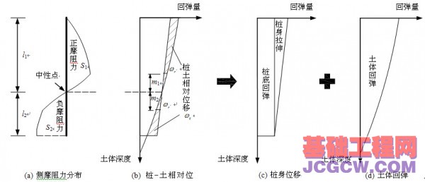 分别为正、负侧摩阻力的面积,