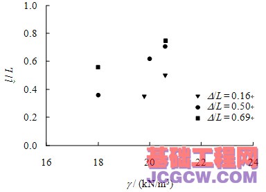 基本符合线性关系,这也说明桩长和开挖深度是影响桩侧摩阻力变化的直接因素。当桩长一定时,随着基坑开挖深度的增加,中性点位置下移,中性点深度与桩长的比值线性增加。当基坑开挖深度一定时,随着桩长的增加,中性点深度与桩长的比值线性减小。