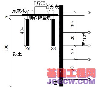 注:①B桩距离A桩10 cm(2D),C桩距离A桩20 cm(4D);②Z2、Z5桩长一半处锯断;③模型桩弹性模量采用简支梁法标定。