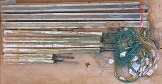10 mm的PVC管,在与桩表面接触处与桩侧预先固定的柔性套管连通,确保模型土不进入PVC管内形成堵塞,并穿过外侧挡板、端部与挡板平齐,便于安装百分表(用加长探针接长)。填筑完成后,静置近1个月,让模型土自重沉降。