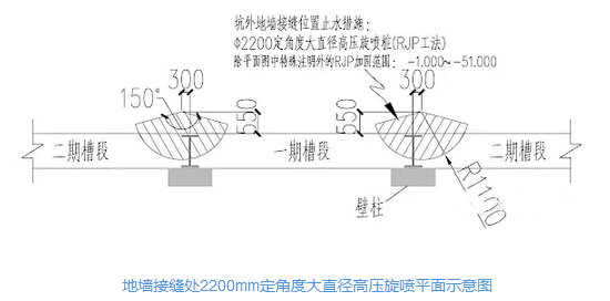 2200mm定角度大直径高压旋喷桩地下连续墙止水封堵应用