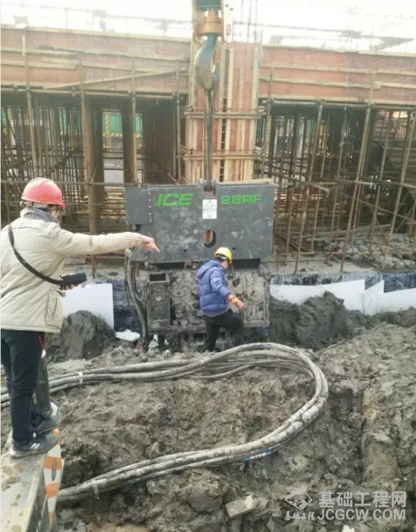 在浙江嘉兴,一位开发商需要在地下3米深处建立挡土墙,意味着千斤顶没有了挡土墙提供反力,无法使用。这为ICE提供了首次演示的机会,让ICE的免共振技术证明自己能做这项工作。28RF免共振锤表现非常完美。该锤的激振力可变,避免了启动时低频造成墙体损坏,锤的频率为2300rpm,足够快速,不会损坏混凝土。静桩拔力为40吨,拔桩速度很快。