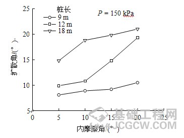 、外荷载P及加固深度h下复合地基应力扩散角取值见表7。|