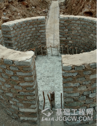 图为该项目带有桩基承台的灌注桩砖胎模砌筑后图片