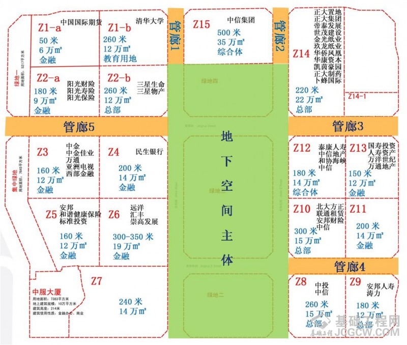 整个CBD核心区的建设进度总布局是先施工地下公共空间及管廊部分,后开发各二级地块,地下空间及管廊部分结构竣工后将为各二级地块提供交通通道及临时材料堆场,为二级地块开发服务。
