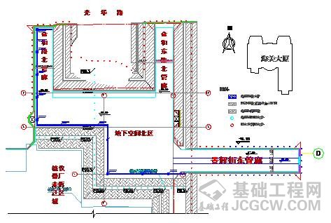 另一方面,地下空间四周若采用帷幕隔水,则需要在红线范围内或者在二级地块范围内施工地连墙,其位于基底以下的嵌固深度达到10m以上,十分不经济;同时由于拆迁不到位,地连墙也不能形成封闭。经过多次的技术、经济分析,在2011年1月,组织专家进行降水方案专项论证,最终确定管井降水方案。