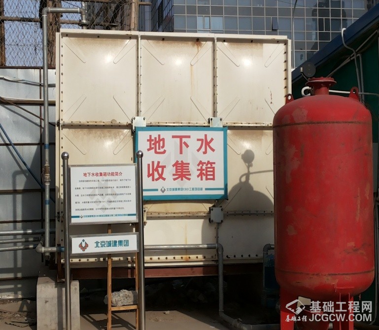 地下水是一种宝贵的资源,而工程降水往往造成大量的水源流失,为贯彻绿色施工理念,节约水资源,施工现场设置了储水箱及加压罐,将抽取的地下水用于以下几方面:结构施工养护、现场洒水降尘、车辆冲洗、工地周边道路冲洗、消防用水、市政绿化,日平均节约自来水使用量350t。