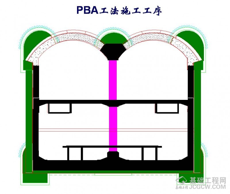 洞桩法优点:施工简单、工期短;破除量小;施工交通、通风条件好。