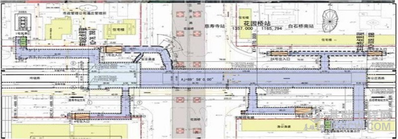 北京6号线花园桥站主体位于西三环花园桥主桥垮的下方。车站暗挖段长190m,车站暗挖断里程处覆土厚度为8m左右,底板埋深25m。