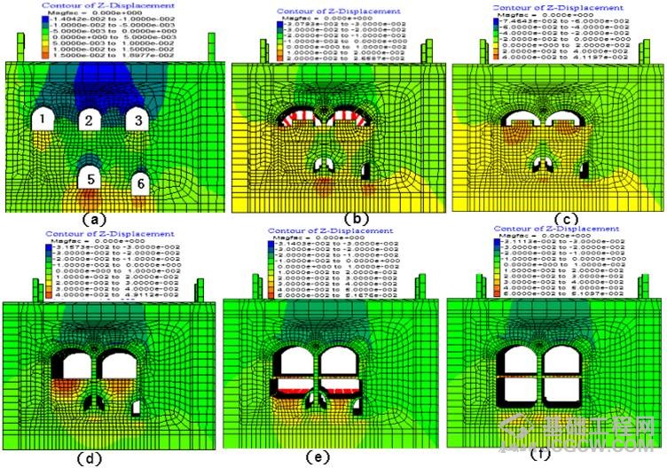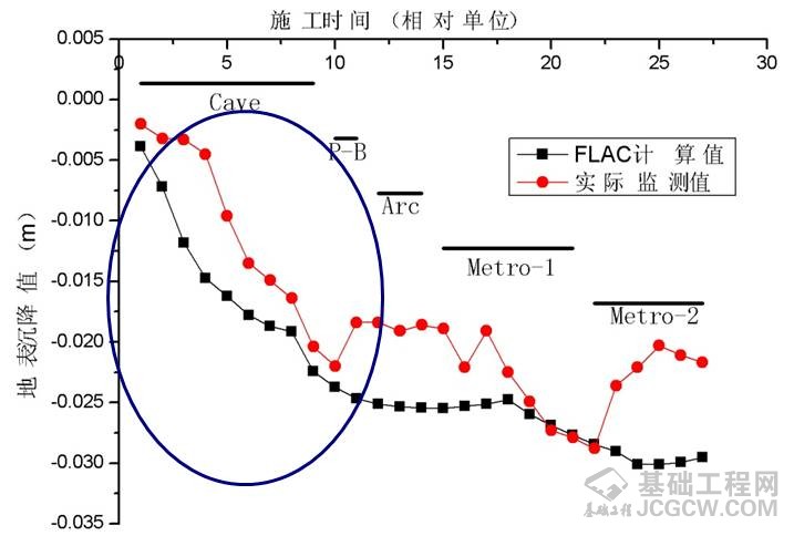 结论:导洞开挖阶段导致的地表沉降较大,占最终沉降量的60%以上,该数值分析方法可较为准确的预测风险。