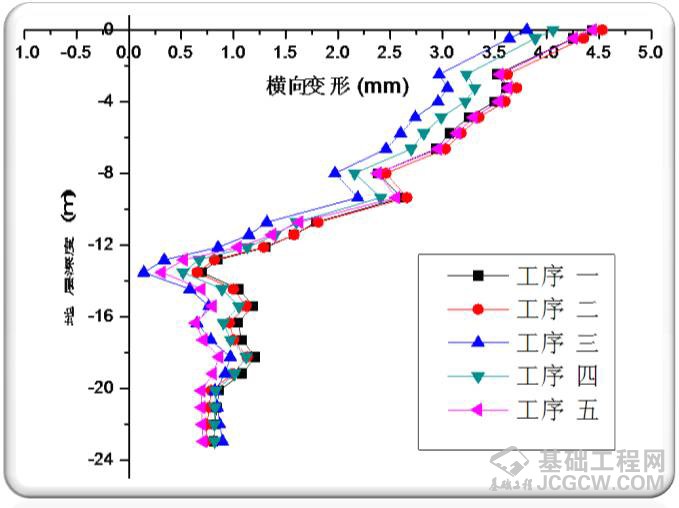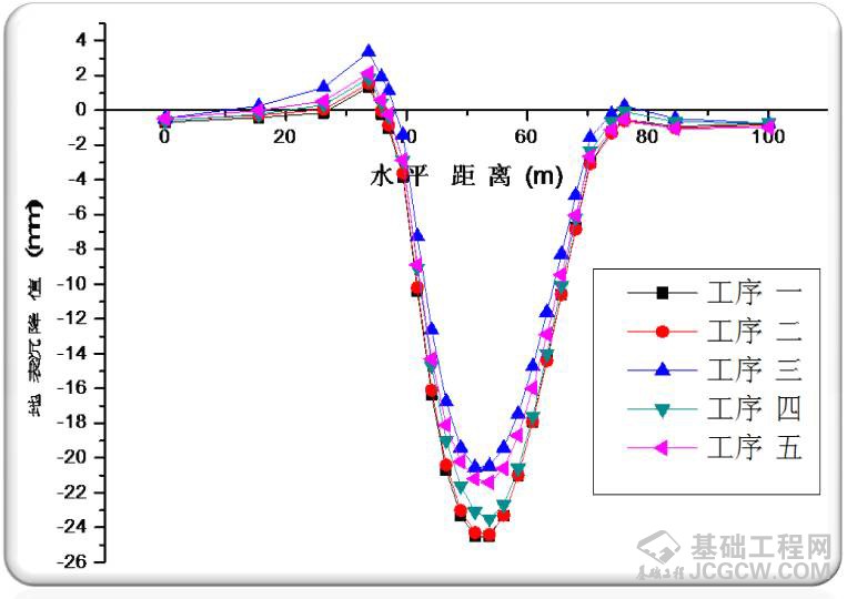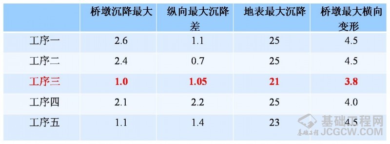 结合以上分析,导洞按照“上下交叉、先上后下” 的原则开挖,地表沉降最小,且桥桩横向变形最小。