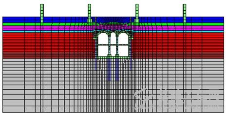 为了消除非对称下穿桥梁造成的不均匀影响,分析采用