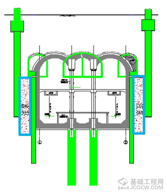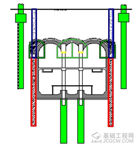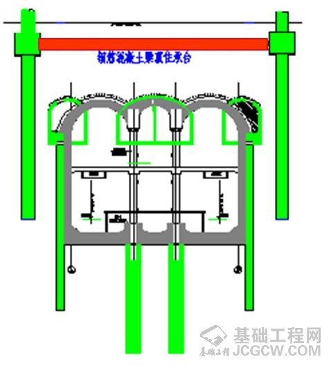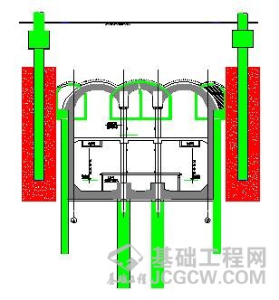 (3)导洞内做底纵梁、中柱及桩顶冠梁、顶纵梁