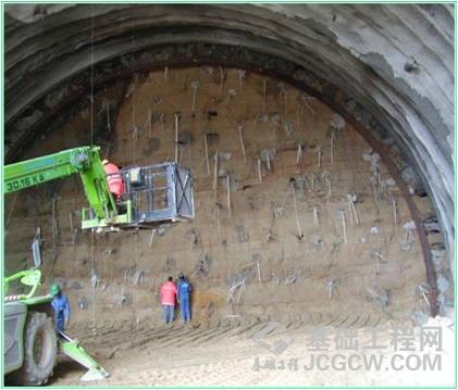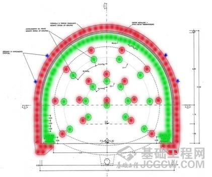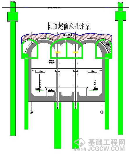 开挖导洞前拱顶超前深孔注浆,注浆大约1.5m厚度。