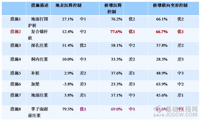 掌子面超前注浆可以有效减小导洞开挖导致的应力释放,对桥墩的沉降和水平变形以及地表的沉降都能起到较好的控制作用。