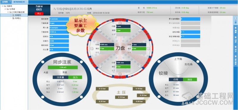 实时显示盾构施工参数及导向系统参数,并对参数进行实时预警;