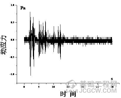 (2)随地震波强度的增加,结构顶板处的动应力变化不大,而且也没有规律。