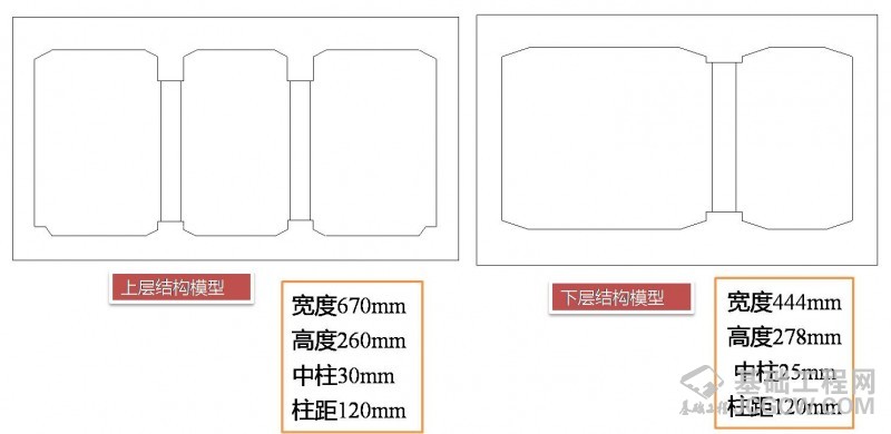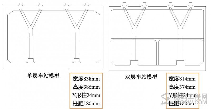 根据原型地铁车站结构尺寸和结构特点以及设计试验相似比的要求,并对原型结构进行了简化处理,最终确定模型试验尺寸。