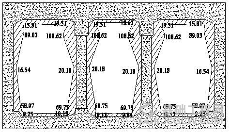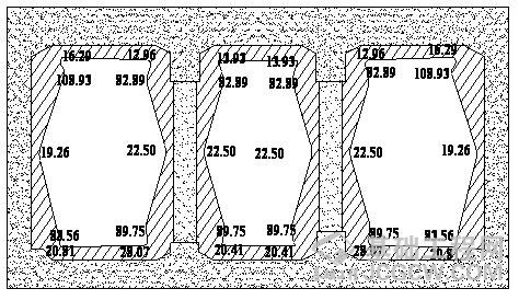 设备区断面一:断面宽41.1m,高16.75m,最大跨度9.75m