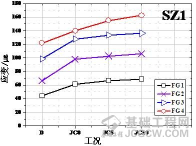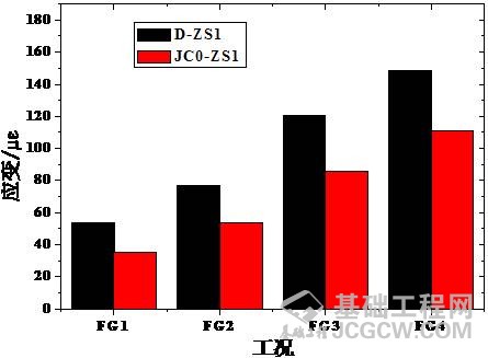 JC0工况中,边墙顶部应变幅值大于底部;中柱底部应变幅值小于顶部。