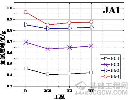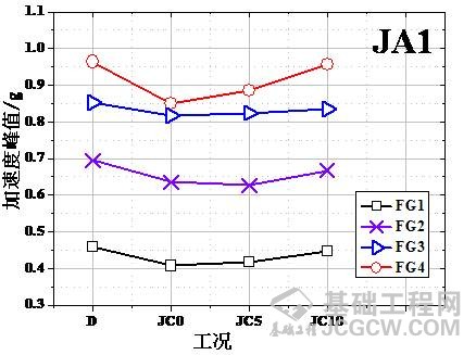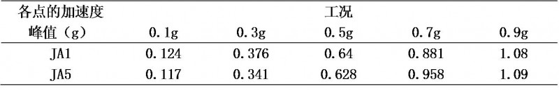 不同工况下Y柱各点加速度峰值 不同工况下Y柱各点加速度放大系数