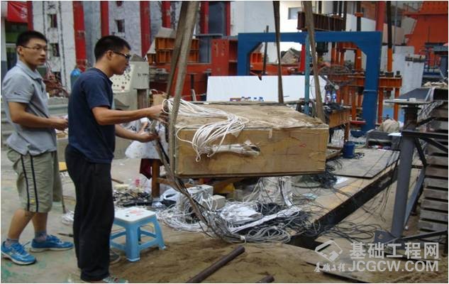 振动台试验在北京工业大学工程抗震与结构诊治实验室进行,设备为美国MTS公司生产的电液伺服驱动地震模拟振动台。