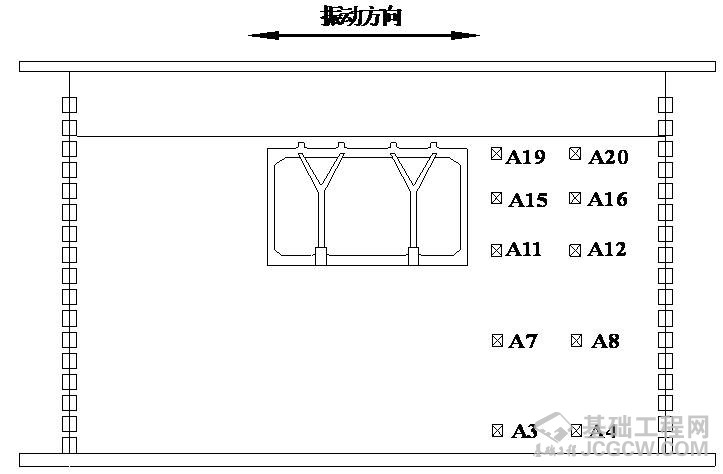 双层结构中Y型柱加速度最大值出现在Y型柱顶部,加速度最小值出现在Y型柱与中板相交的位置,双层结构中Y型柱上层监测点的加速度整体大于下层监测点的加速度。