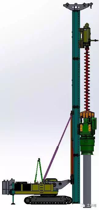 ⑬ 下移钻机,使钻机接头与第一节钻杆上接头连接,使钻机边转动边上移钻机排土,直至钻杆从桩管里全部出来,用吊车或桩架副吊绳索吊住第一节钻杆,卸掉该钻杆与钻机的连接,将该钻杆吊走;