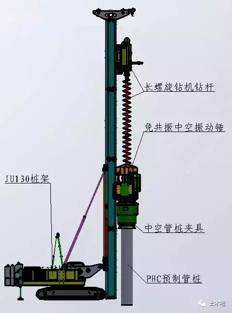 本工法针对大直径管桩中空特点、结合振动桩锤和钻机施工方法,充分发挥各自优点。它既利用钻机在管桩内取土、减小桩端阻力,又利用振动减小桩侧阻力达到沉桩目的。