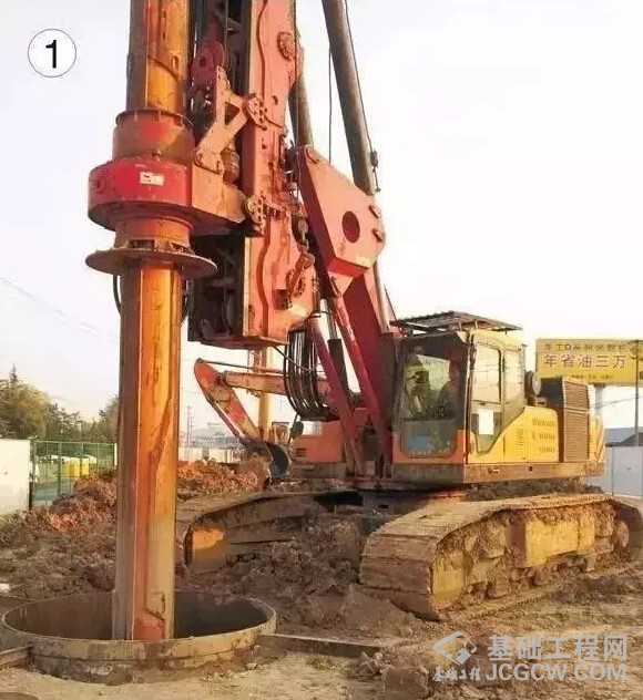 旋挖钻机成孔首先是通过底部带有活门的桶式钻头回转破碎岩土,并直接将其装入钻斗内,然后再由钻机提升装置和伸缩钻杆将钻斗提出孔外卸土,这样循环往复,不断地取土卸土,直至钻至设计深度。对粘结性好的岩土层,可采用干式或清水钻进工艺,无需泥浆护壁。而对于松散易坍塌地层,或有地下水分布,孔壁不稳定,必须采用静态泥浆护壁钻进工艺,向孔内投入护壁泥浆或稳定液进行护壁。