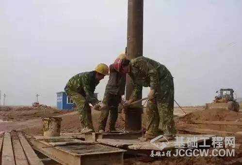 混凝土浇筑结束后,即起拔护筒,并将浇筑设备机具清洗干净,堆放整齐。