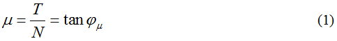 其中N为正压力,T为开始滑动时的剪切力,μ为摩擦系数,