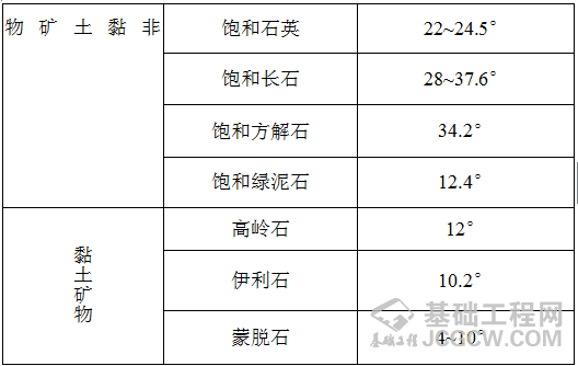 /2的角度滑动。实际上由于现实的土颗粒的不规则性,几乎不可能是纯滑动摩擦的。表1表示的是组成土的常见的固体矿物间的滑动摩擦角。