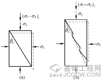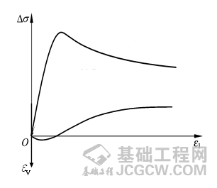 与曲线①相比,曲线③表明由于咬合,颗粒的破碎与重定向排列也需要额外的外加能量,所以也增加了土的抗剪强度,但它比曲线④需要的能量要小。在高围压下,颗粒破碎量大,很少发生剪胀。颗粒的重排列往往会破坏土的原有结构,造成剪胀量减少。从这个角度来看,颗粒的破碎和重排列又减少了土的剪胀,与不发生颗粒的破碎和重排列的线④相比,实际上减少了土的剪胀性和抗剪强度。
