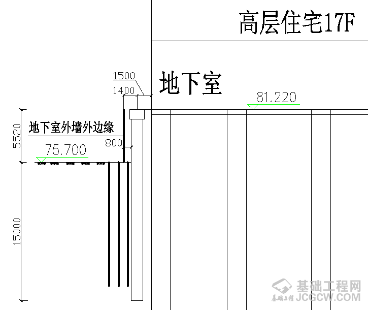 场地紧邻17层高层建筑物, 基坑开挖不具备自然放坡条件。开挖深度内土层主要为素填土、圆砾及砂卵石层,若处理不当,将对基坑开挖带来不利影响。