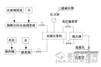 ①以普通硅酸盐水泥(P.O.32.5)和40”Be水玻璃为主要制浆材料,水玻璃作为添加剂调节注浆液的初凝时间。根据本地结构特性,注浆浆液的浓度由稀到浓,逐级变换。