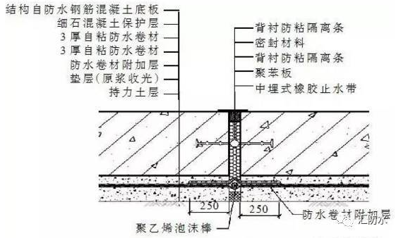 由于该工程局部为地下3层,并设有部分地下连廊,后期存在一定的沉降变形,因此在变形缝、振动的施工缝部位预埋了注浆导管,以备后期防水维修处理。