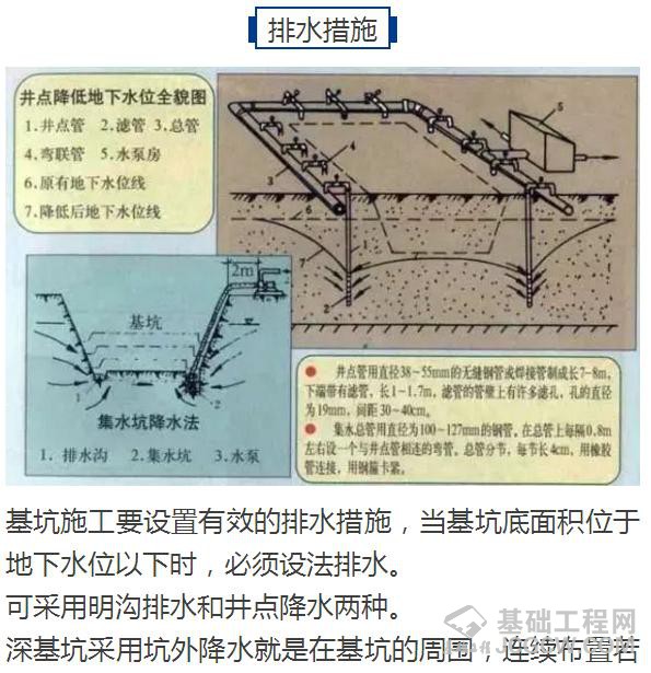 干抽水井,当用某些设备不断抽水时,地下水位就会下降。形成“下降漏斗”。井点降水的主要设备有:井点管、排水总管、抽水设备等。