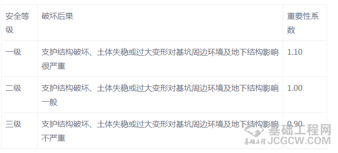 《建筑基坑支护技术规程》(JGJ120-2012)对基坑侧壁安全等级及重要性系数规定如下:
