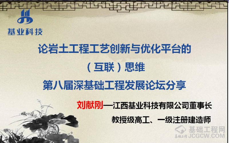 核心提示:江西基业科技有限公司董事长刘献刚在第八届深基础工程论坛中发表论文本ppt版权归第八届深基础工程论坛会务组所有,如需转载请注明